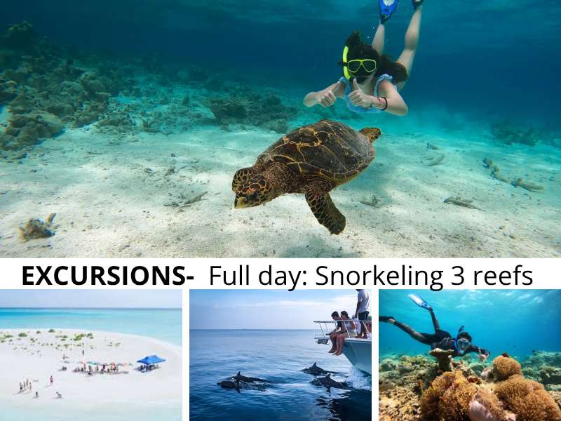 Snorkeling to 3 Reefs; at Biyadhoo Reef, Coral Garden and Turtle Reef